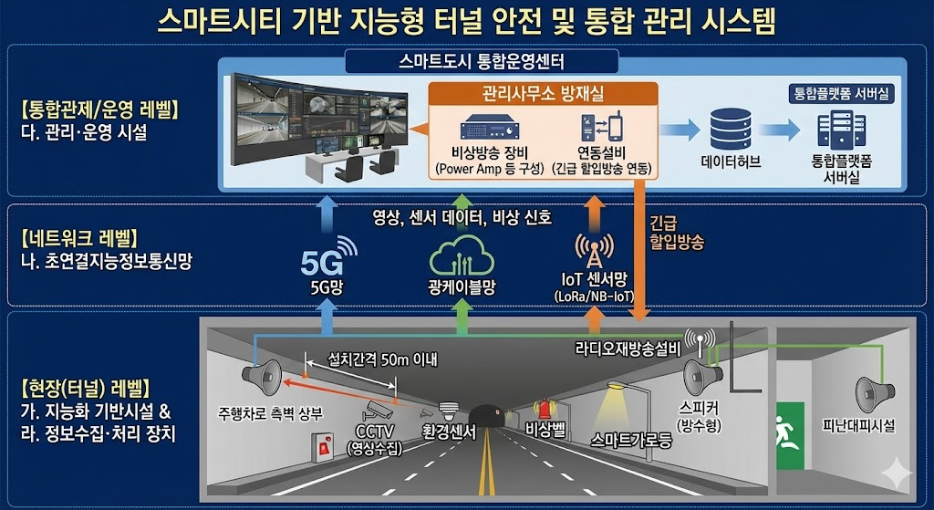 - 스마트도시기반시설의 핵심은 "전통 물리 인프라를 센서·네트워크로 연결하고, 플랫폼에서 분석·제어"하는 물리 및 디지털 통합 구조에 있음