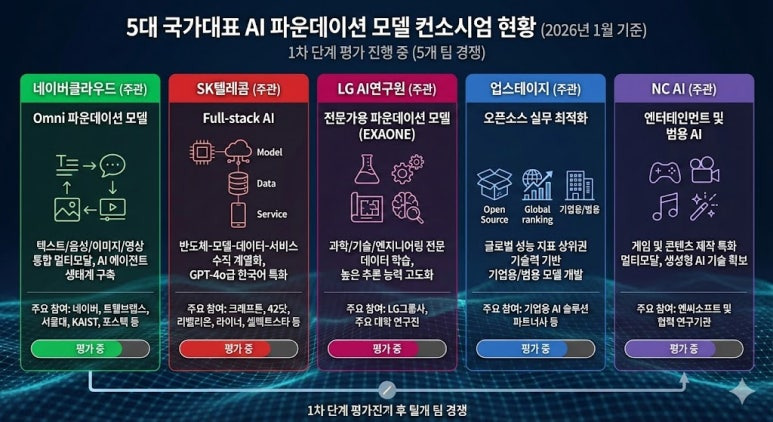 2026년 1월 현재, 대한민국 과학기술정보통신부가 추진하는 '독자 AI 파운데이션 모델' 프로젝트에 따라 선정된 5개 정예 컨소시엄은 프롬 스크래치(From Scratch, 기초부터 직접 개발)' 방식으로 각기