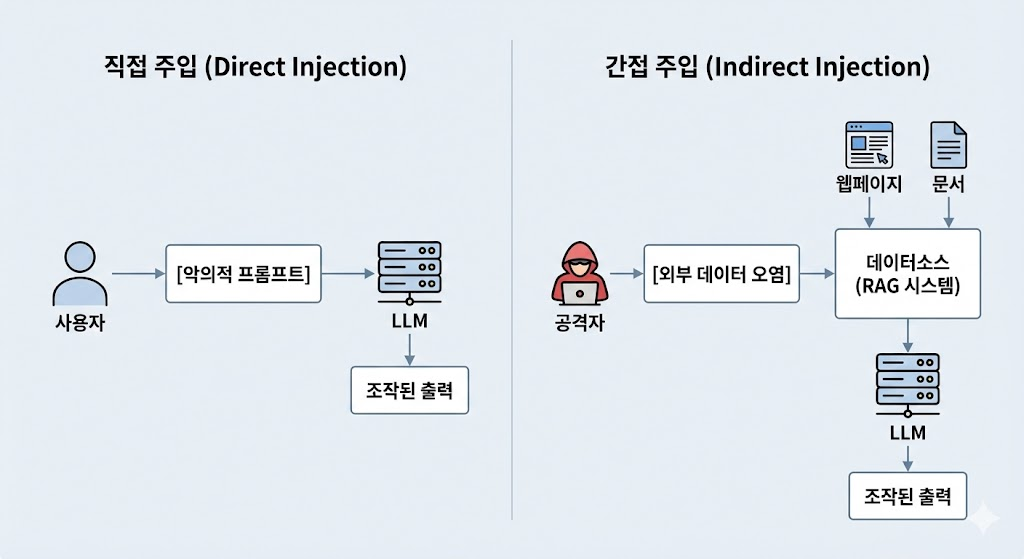- 두 가지 유형 모두 LLM의 컨텍스트 혼동을 악용하며, 간접 주입이 탐지가 더 어려움