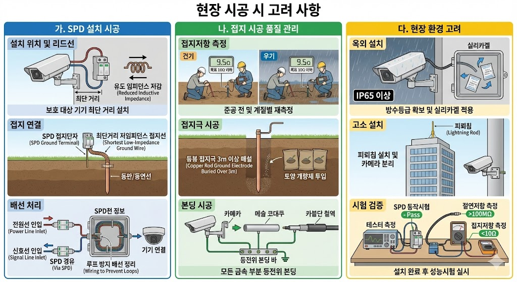 - 보강 조치는 SPD 용량 상향, 접지저항 개선, 다단 보호 추가, 차폐 강화 등 설계 보완