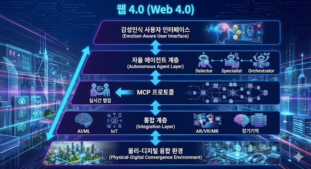 | 주요기술 | 블록체인/NFT/DID/시맨틱웹 | 자율에이전트/MCP/IoT/MR | 분산→자율 진화 |